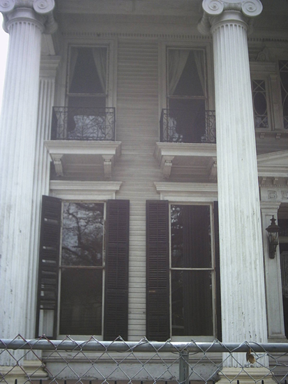 The Front Northeast Side of the Belfort Mansion in 3/2004. In this picture, you can see drapes hanging in the 2nd floor windows of the room that was renovated into the Music Bedroom. I was able to see some furnishings inside the Mansion but couldn't tell if anyone was currently living there.