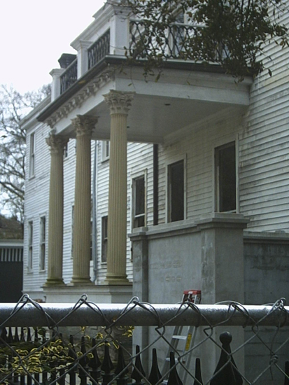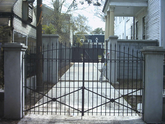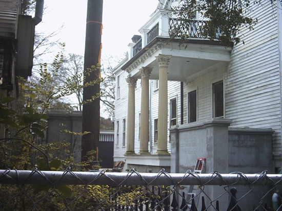 The Northeast Porch/Courtyard of the Belfort Mansion in 3/2004. The new gates provide an entrance to the Driveway that was poured over the Courtyard.
