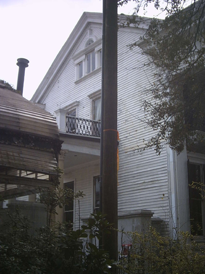 The Northeast Porch from the sidewalk in front of the vacant Scheinuk Florist building. In this picture, you can see the attic windows above the 2nd floor.