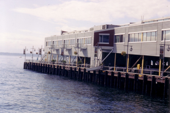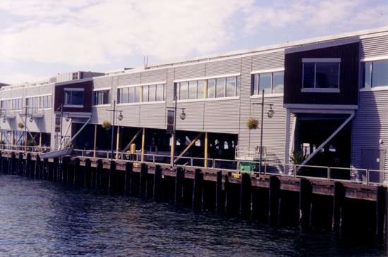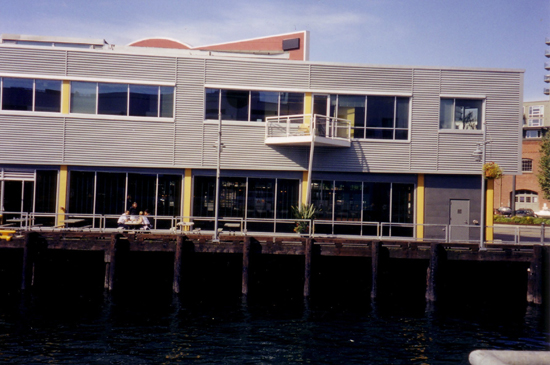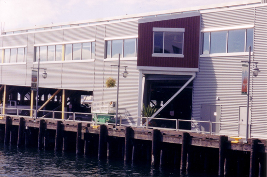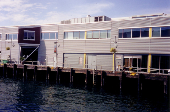 The Front Doors were located in the area under the 2nd floor windows extending over the South Sidewalk.