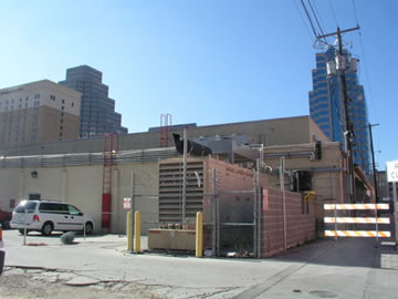 The Alley on the north side of the Austin Warehouse from San Jacinto Boulevard prior to the renovations for the filming of the series. The Alley connects San Jacinto Boulevard to Trinity Street.