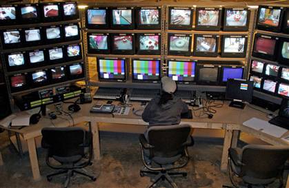 The Control Room in the Austin Warehouse. Although the building is nearly 40,000 square feet, only 8,000 square feet was renovated for the filming of the series while the production crew operated in the remaining space.
