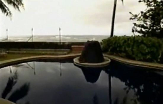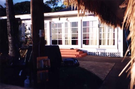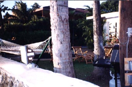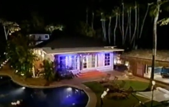 The Backyard from the southeast corner of the property next to the Gym. In this picture, you can see electrical outlets installed for the filming of the series were hidden behind the palm trees.