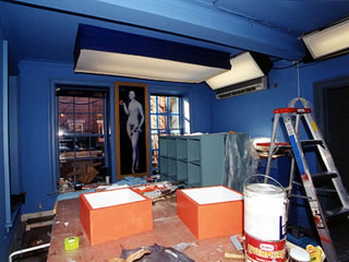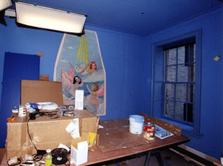 The renovations to the Blue Bedroom in the Hudson Street Loft for the filming of the series.