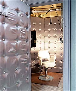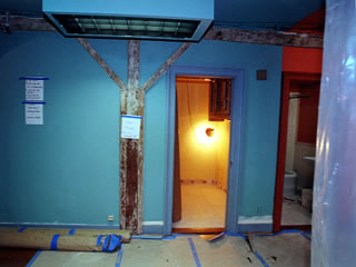 The renovations to the Confessional Room in the Hudson Street Loft for the filming of the series. The Confessional Room was located in a utility room/storage closet. In this picture, you can see the 3rd Floor Bathroom outside the Red Bedroom.