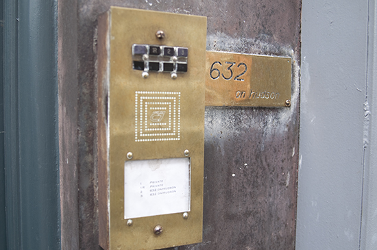 The intercom next to the Front Door. The directory reads: 1 - Private, 1R - Private, 2 - 632 ON HUDSON, 3 - 632 ON HUDSON.