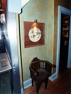 The Phone Room in the Hudson Street Loft. The shelving/bookcases in the Phone Room were original to the Loft. The bookcase facade hides a Murphy bed.