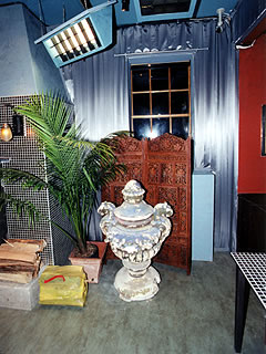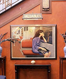 The painting and "VALUABLES" light were original to the Loft. The painting is of Karen Lashinsky, the owner of the Loft.