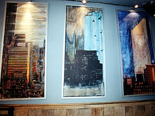 The Lobby was decorated with paintings depicting the New York City skyline.