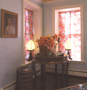 In comparison with the picture above, the southeast corner of the Blue Bedroom during the filming of the series.