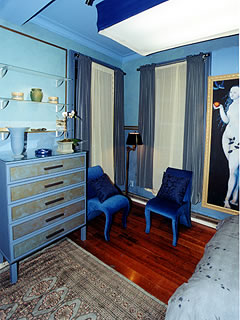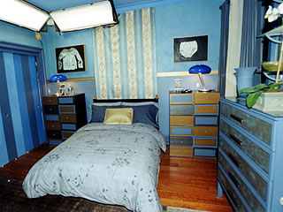 The Blue Bedroom in the Hudson Street Loft after the Loft had been returned to its original condition. This bed is located along the north wall of the Bedroom.