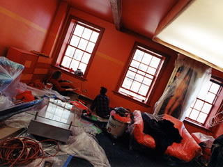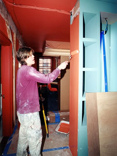 The renovations to the Red Bedroom in the Hudson Street Loft for the filming of the series.