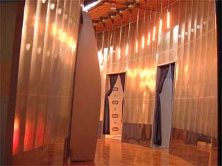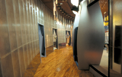 The 2nd Floor Hallway in the Wicker Park Loft separated the Bathroom on the left from the Bedrooms on the right. In this picture, you can see the semi-transparent walls used for the Bathroom and the Bedrooms. There were closets located along the Hallway wall.