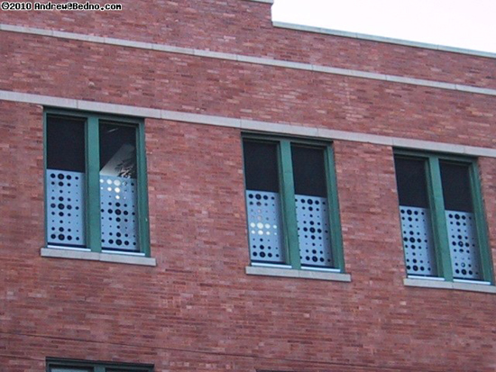 The 3rd Floor Windows of the Wicker Park Loft. Four windows were removed on the Southeast Corner of the 3rd floor to create the Spa/Patio area. Metal privacy panels were installed inside the empty window frames.