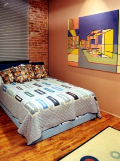 The Orange Bedroom in the Wicker Park Loft had two beds and was located in the northeast corner of the building next to the Brown Bedroom.