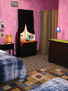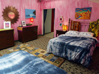 The Pink Bedroom in the Former Blue Crab Restaurant had two beds and was located next to the Closets.