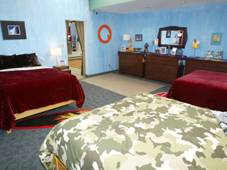 The Blue Bedroom in the Former Blue Crab Restaurant on 7/20/2004. In this picture, you can see the loft area along the west side of the Bedroom where production equipment was stored during the filming of the series.