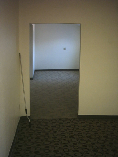 The entrance to the Bedroom with the hallway where the Closets were located in the background. The hand crank leaning up against the wall was used to open and close the skylight.