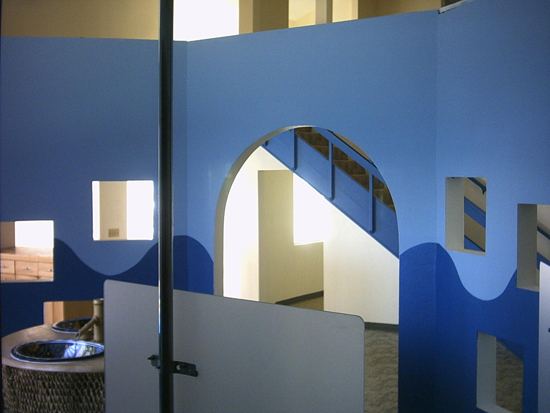 The Washroom in the Former Blue Crab Restaurant on 7/20/2004. The Washroom and Kitchen were the only rooms where the renovations for the filming of the series had not been removed. Studio lights were installed on top of the Washroom walls during the filming of the series.