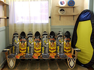 Surfboards, wake boards, and boogey boards in the Surfboard Storage Room.