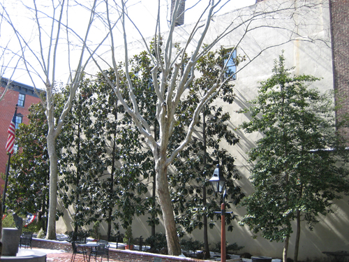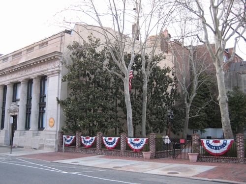 The east side of the Former Girard Corn Exchange Bank from the front yard of the Betsy Ross house.