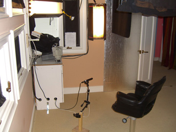 Inside the Confessional Room looking towards the camera and microphone setup.