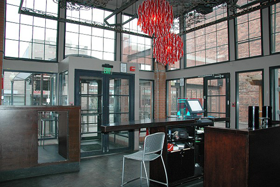 In comparison with the picture above, another view of the Atrium in Theorie. In this picture, you can see the elevator which was also blocked off during the filming of the series.
