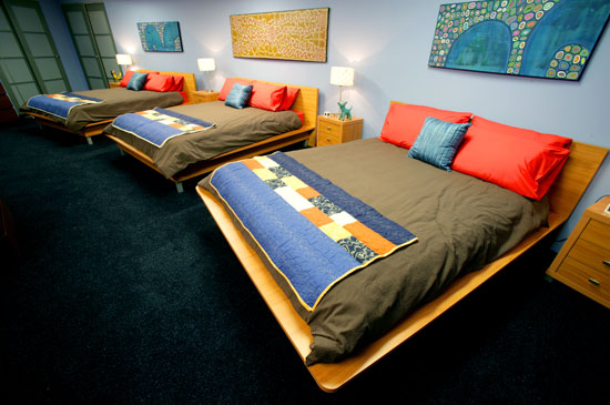 The Blue Bedroom in the Former OneWorld Sport Building had three beds.