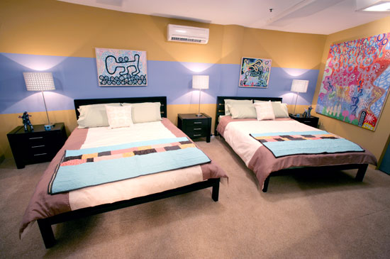 The Brown Bedroom in the Former OneWorld Sport Building had two beds.