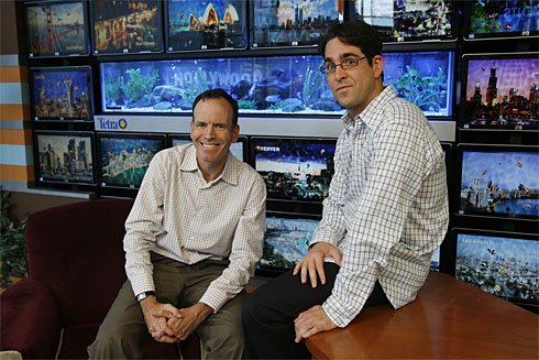 The Fish Tank in the Columbia Square Building. “One wall inside the 20th-edition Real World house presents the reality-as-fishbowl metaphor, MTV-style. An aquarium with fish swimming around a HOLLYWOOD sign is surrounded by 19 video screens documenting each season of the show.” (2007 USA Today Article)