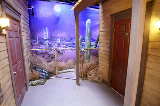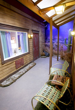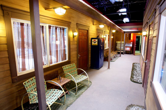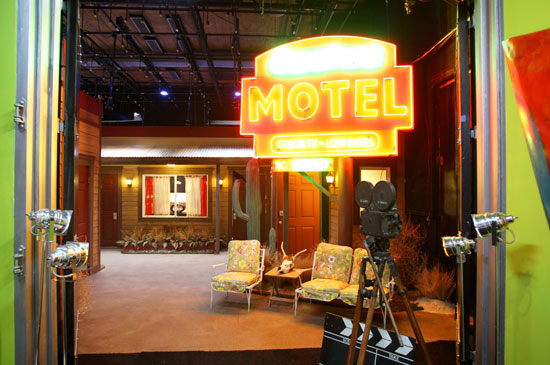 The exterior of the Bedrooms in the Columbia Square Studios were designed to look like an old western motel.