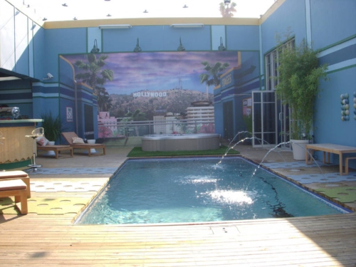 The Pool of the Columbia Square Studios with the Spa in the background. In this picture, you can see the Outdoor Bar to the left and the entrance to the Office to the right of the Spa.
