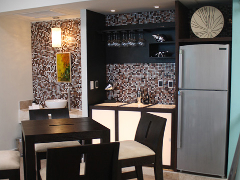 The Bar in SuiteME is located next to the Billiard Room and across from the Foyer.