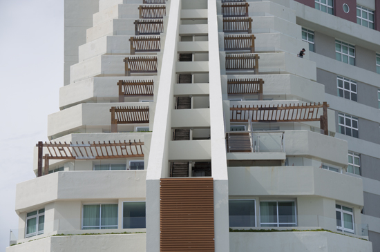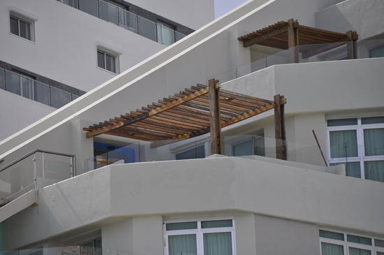 The view of the Deck, Serene Balcony and Balcony X. In this picture, you can see the emergency exit staircase running between them.