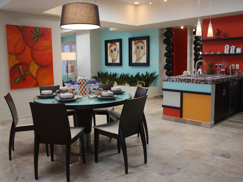 Another view of the Dining Room with the Kitchen and Seating Area in the background.
