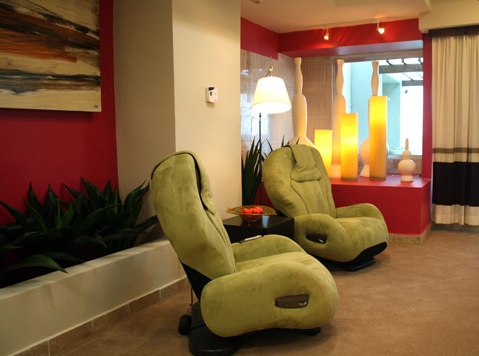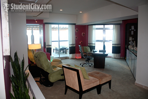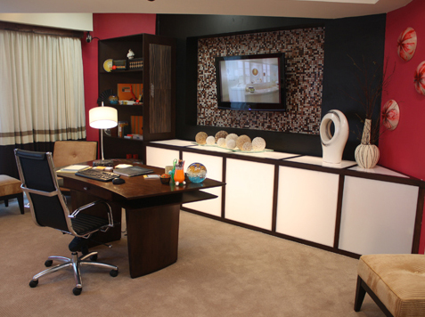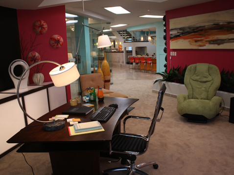 Another view of the Office with the Phone Room, Kitchen and Spa in the background.