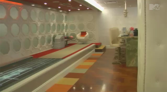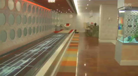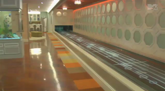 The Bowling Alley in the Hard Rock Penthouse Suite. The ball return is located across from the Bar.