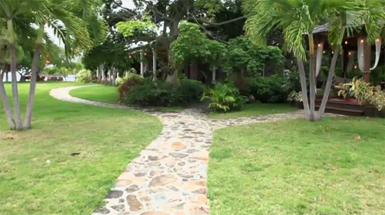 The sidewalk from the Dock leading to the Gazebo and House.