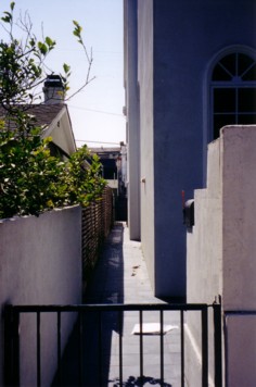 The Pathway of the Venice Beach House in 2002 from the Front Gate. The Front Doors are located on this Pathway, which runs the entire length of the House from 30th Avenue to 30th Place.