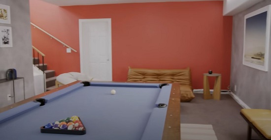 Another view of the Billiard Room. In this picture, you can see the entertainment center next to the stairs shown below has been removed.