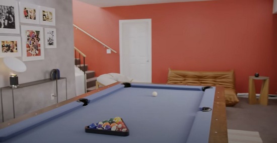 The Billiard Room in the Venice Beach House. The entrance to the Confessional Room was located next to the stairs.