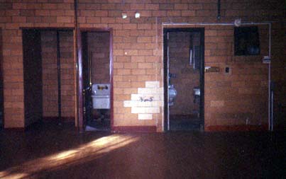The 1st Floor of the Boston Firehouse after the Firehouse had been returned to its original condition. This picture was taken through the windows of the Garage Door looking north towards the areas that were renovated into the Living Room, Kitchen and Billiard Room.