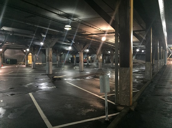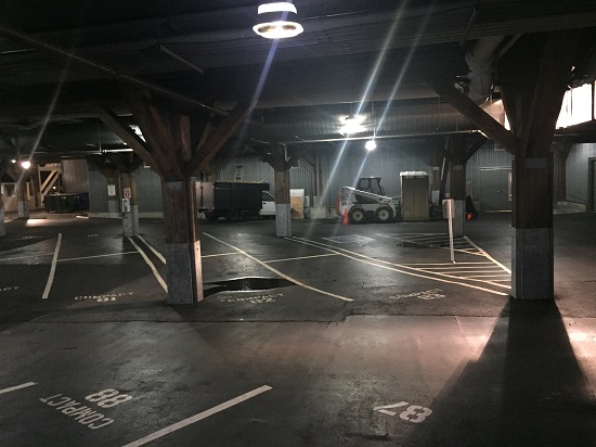 The 1st Floor of Pier 70 on 10/17/2017. Now utilized as the parking lot for the Pier, this picture was taken from the general area of the Front Doors looking to the west.