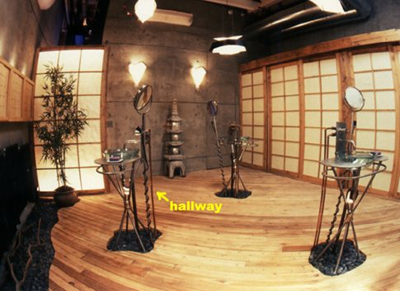 The Bathroom in Pier 70 was located in the eastern end of the Pier past the Bedrooms. There were two showers and two toilets behind the sliding screens. The washer and dryer were located behind the stone wall.