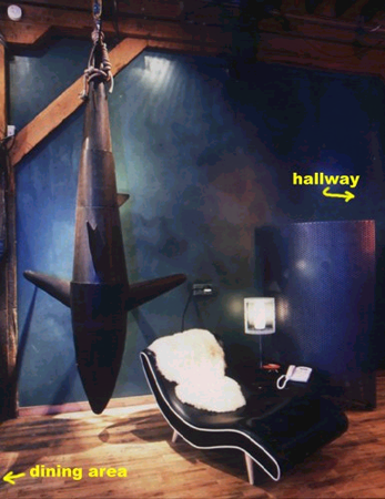 The Phone Lounge in Pier 70 was located at the entrance to the Hallway. The phone that was used to contact the Control Room was located on the wall behind the chair.