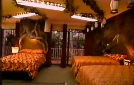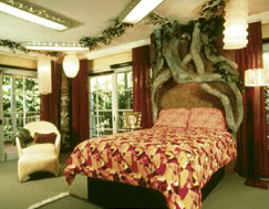 The Bedroom featured a cave design above two of the beds and a tree trunk design above the third.