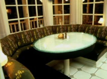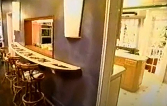 The northern entrance to the Kitchen from the Billiard Room. In this picture, you can see the bar along the west wall and the window into the Kitchen.