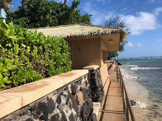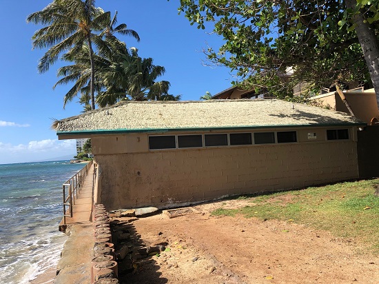 The view of the Gym from the Public Walkway looking east towards Le'ahi Beach Park.