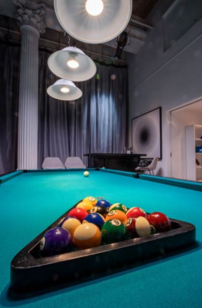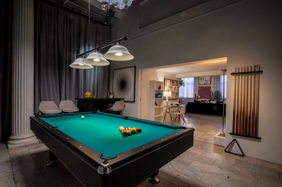 The Billiard Room in the SoHo Loft with the Office in the background.