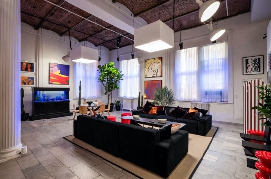 The Living Room in the SoHo Loft with the Dining Room in the background.